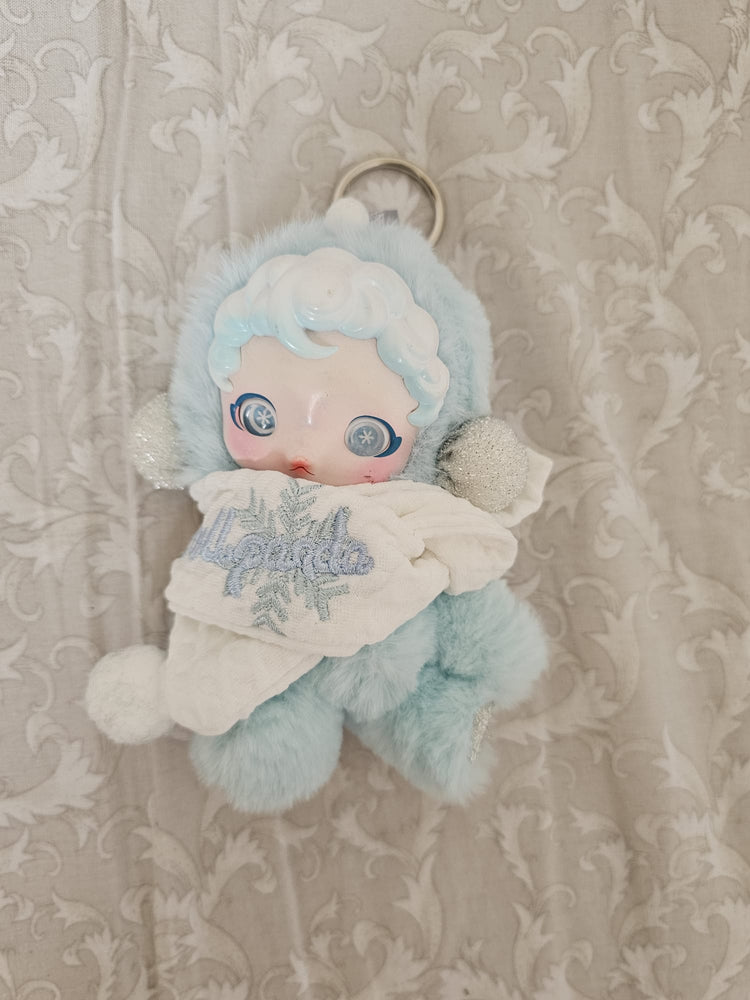 • Design Unico a Tema Invernale: Skullpanda Song of Snow è un personaggio che unisce il fascino misterioso di Skullpanda con la magia e la purezza dell'inverno. Il corpo è avvolto da una morbida tuta in peluche color azzurro cielo, che evoca l'idea della neve e del ghiaccio.