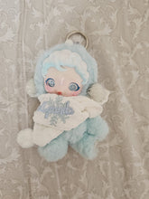 • Abbigliamento ricercato: Il personaggio indossa una sciarpa bianca con una stampa a fiocchi di neve, che si abbina perfettamente al tema invernale. Le mani, le orecchie e le punte del cappuccio sono decorate con un tessuto glitterato argentato, che aggiunge un tocco di luccichio e magia, come se fossero ricoperte di brina.